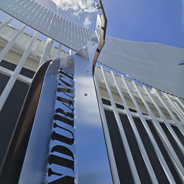 Design & fabrication: Remo Vallance Construction time: One month Install: Remo Vallance Materials: Aluminium Dimensions: H 3m x L 11m x W 3.5m