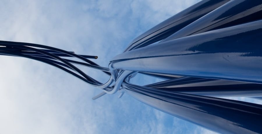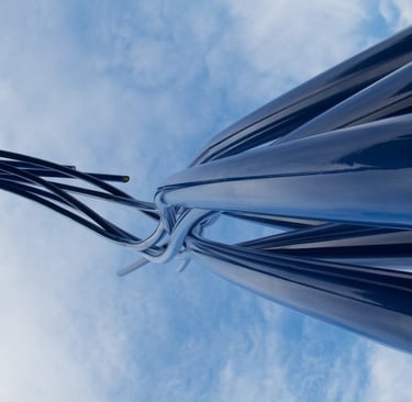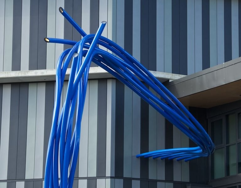'Transmission' describes an evolution of knowledge, history and place. As the tubes separate, the idea of boundless and timeless global transmission and communication is produced. 'Transmission' suggests past, present and future inhabitations, knowledge and heritage.