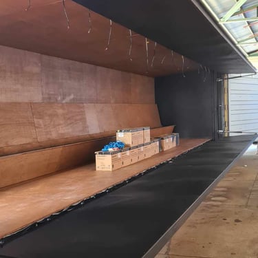 Remo collaborated on this new work curated by Dance North’s Artistic Director Kyle Page. It was housed in a modified forty foot shipping container designed by Liminal Spaces. Remo created 12 metre clear-span horizontal doors with motors, a sonic bench seat for 22 people with 8 bass butt kickers built in, 32 mounted directional speakers, insulated and lined with ply wood and reflective seat lighting.