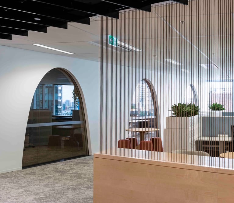 Remo design developed two concept designs for DLA Piper office foyer area in collaboration with Woods Bagot, Architects. Remo created prototypes over an eight month period and once finalised he fabricated the designs. Elegant brass arbors were created for a creeping indoor plant interior feature for a main corridor to the reception desk. Creating a mid century, classic yet timeless interior. In addition two leather cord screens were integrated into meeting room areas to be defined stylishly within the open design. This project was all about high-end detail for a seamless and luxurious feel.