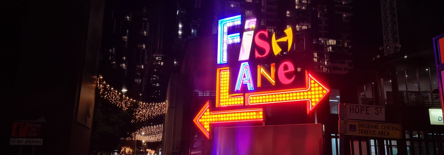Remo was commissioned by the Aria Group in collaboration with Firefly Lighting to build the iconic retro outdoor sign in Fish Lane - Brisbane's hottest new street scene located across from the Brisbane Cultural Centre. Remo designed for fabrication this iconic, colourful and original all weather outdoor light.