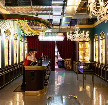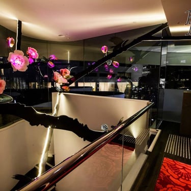 Laruche commissioned Remo to be the lead creative designer and fabricator for the entire venue on two levels e.g. bar, ceiling voids, staircases and sculptual lighting. There was a focus on gothic, timeless and surreal feature lighting with French 16th Century decadence.
