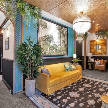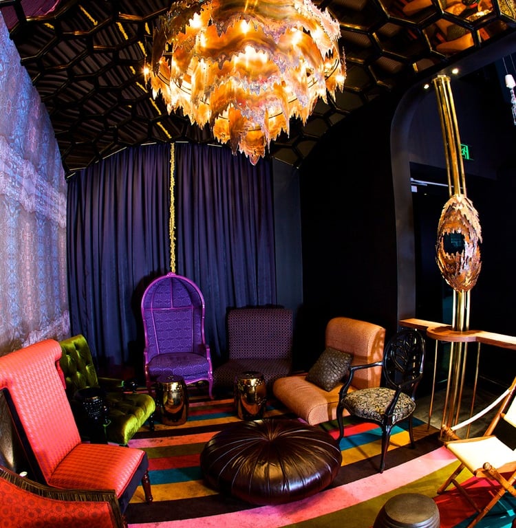 Remo designed a 1920's speak easy, art deco inspired intimate room with a decadent feel.